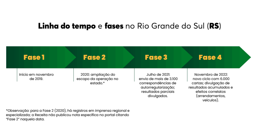 Segundo nota oficial da Receita Federal, a operação teve início no Rio Grande do Sul, em novembro de 2019, com foco em corrigir omissões e estimular a autorregularização por parte dos contribuintes.