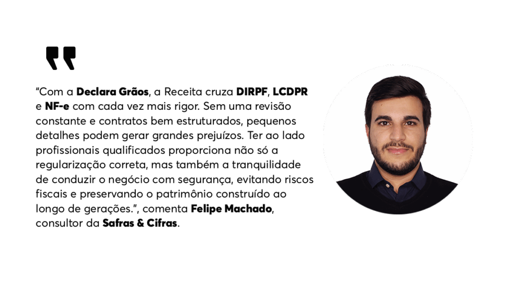 Na Safras & Cifras, acompanhamos de perto as mudanças no cenário tributário e sabemos o quanto operações como a Declara Grãos podem impactar o produtor rural. Nosso papel é orientar, estruturar e trazer segurança para que cada família do agro esteja preparada e não seja surpreendida por fiscalizações ou penalidades.